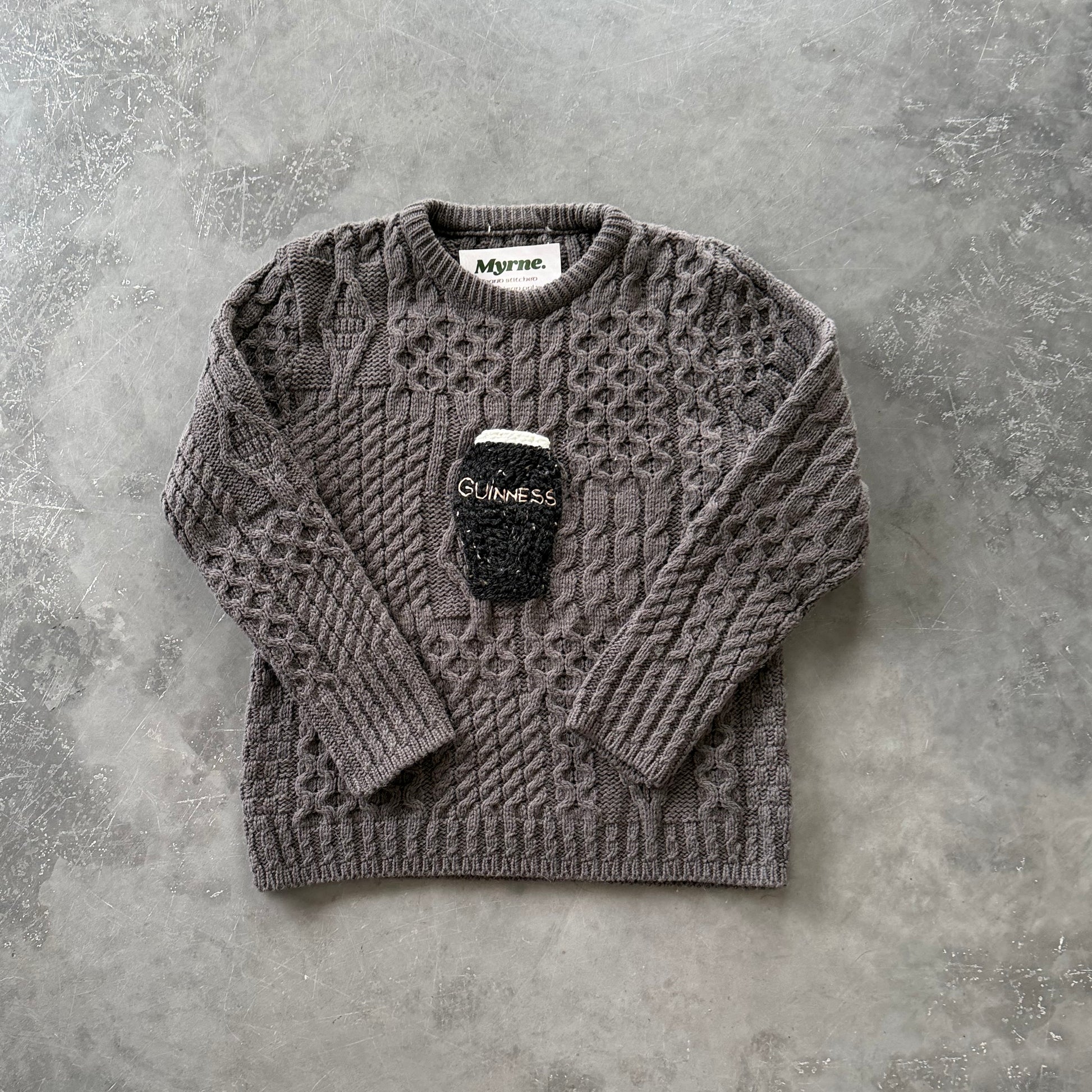 Our Guinness Geansaí’s are hand embroidered by us and are embroidered onto high quality aran wool sweaters. Each one is different and unique, please note that sizes are based on UK sizing, but measurements for the geansaí are listed below and are in inches.