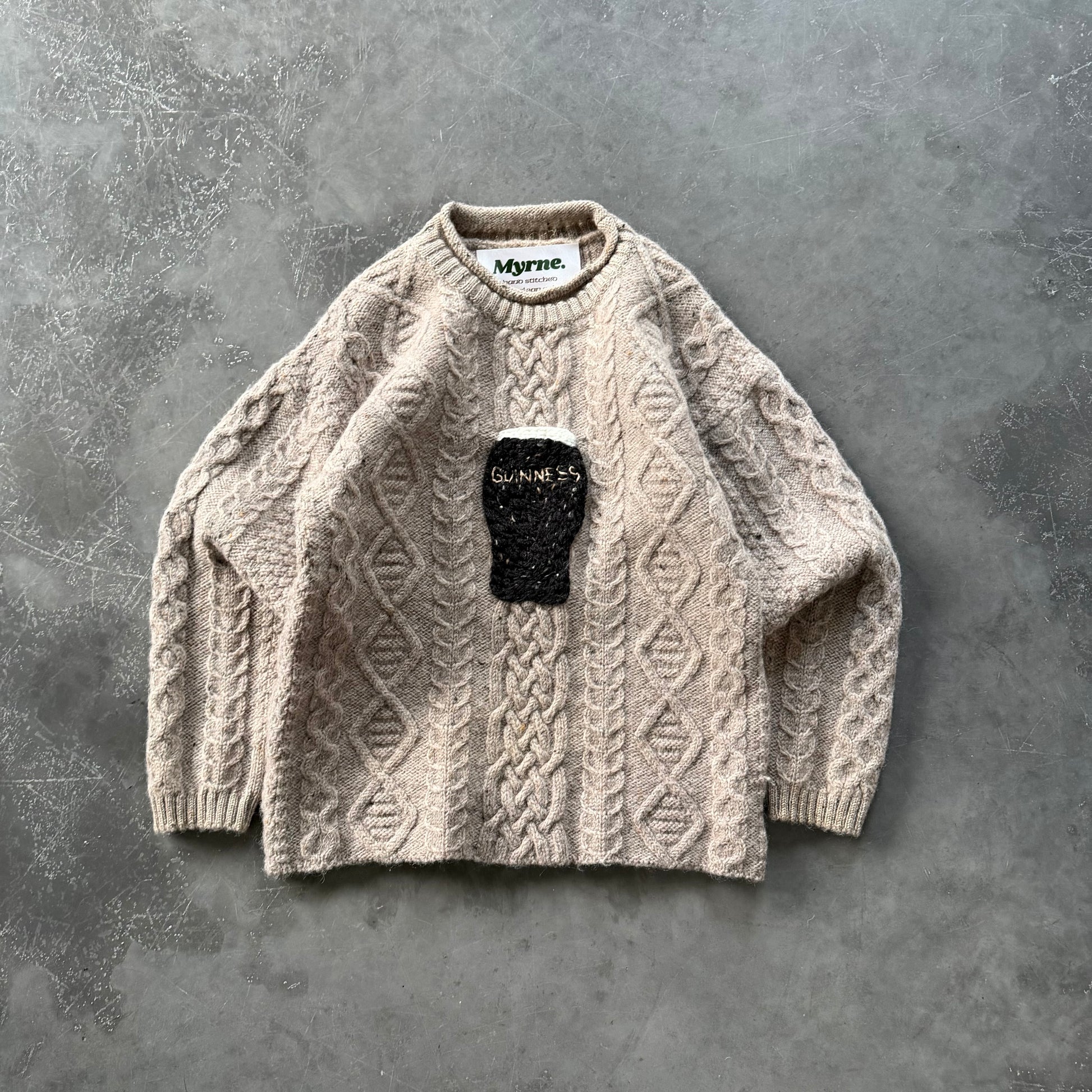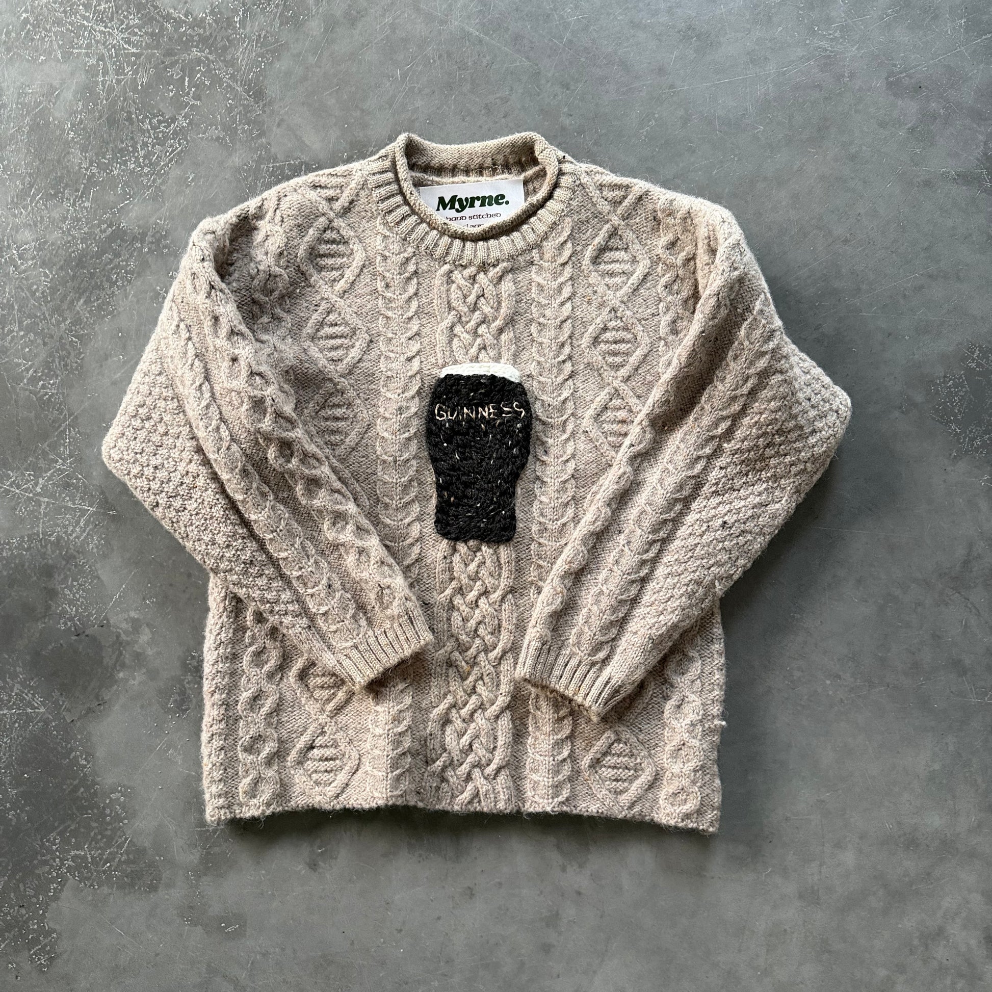 Our Guinness Geansaí’s are hand embroidered by us and are embroidered onto high quality aran wool sweaters. Each one is different and unique, please note that sizes are based on UK sizing, but measurements for the geansaí are listed below and are in inches.