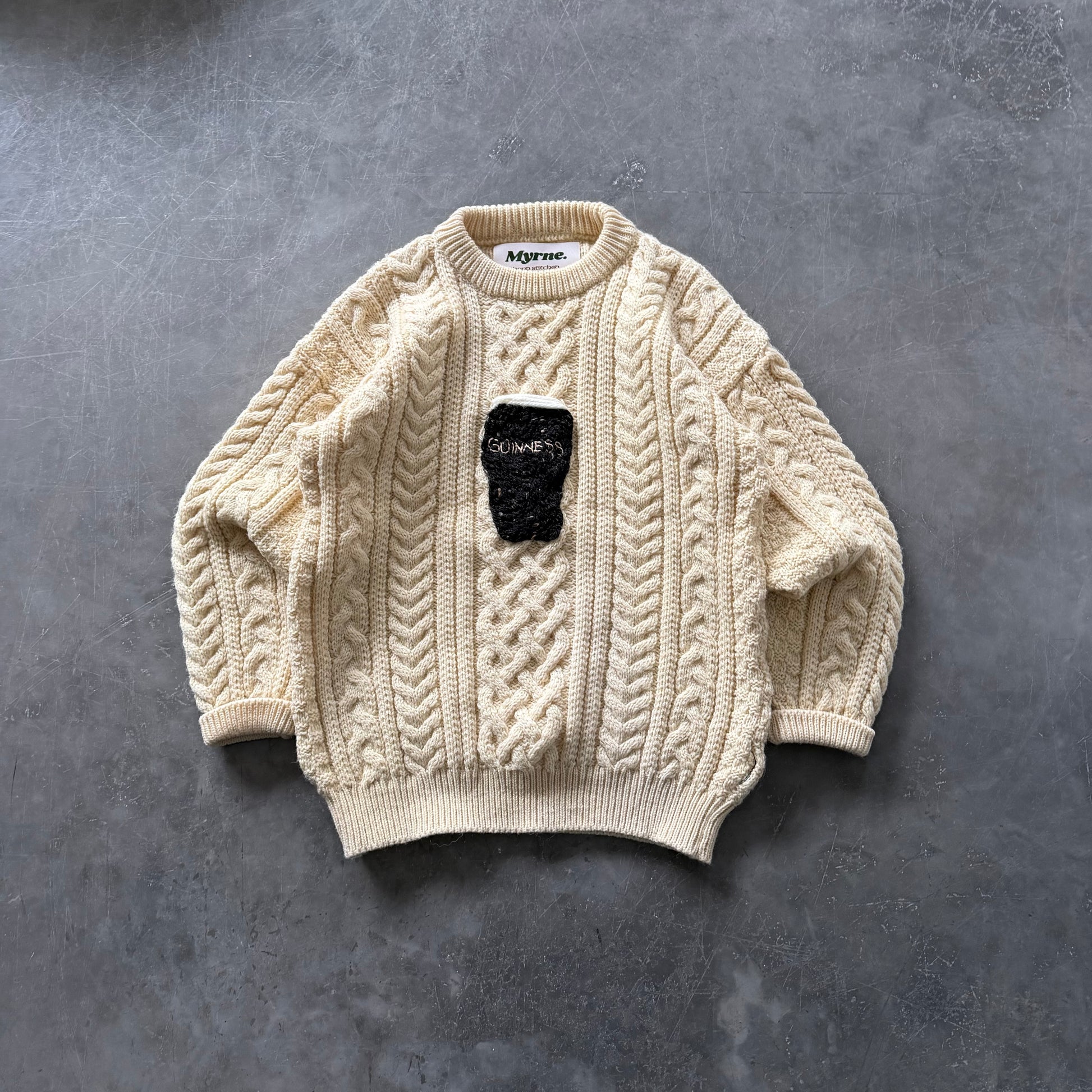 Our Guinness Geansaí’s are hand embroidered by us and are embroidered onto high quality aran wool sweaters. Each one is different and unique, please note that sizes are based on UK sizing, but measurements for the geansaí are listed below and are in inches.