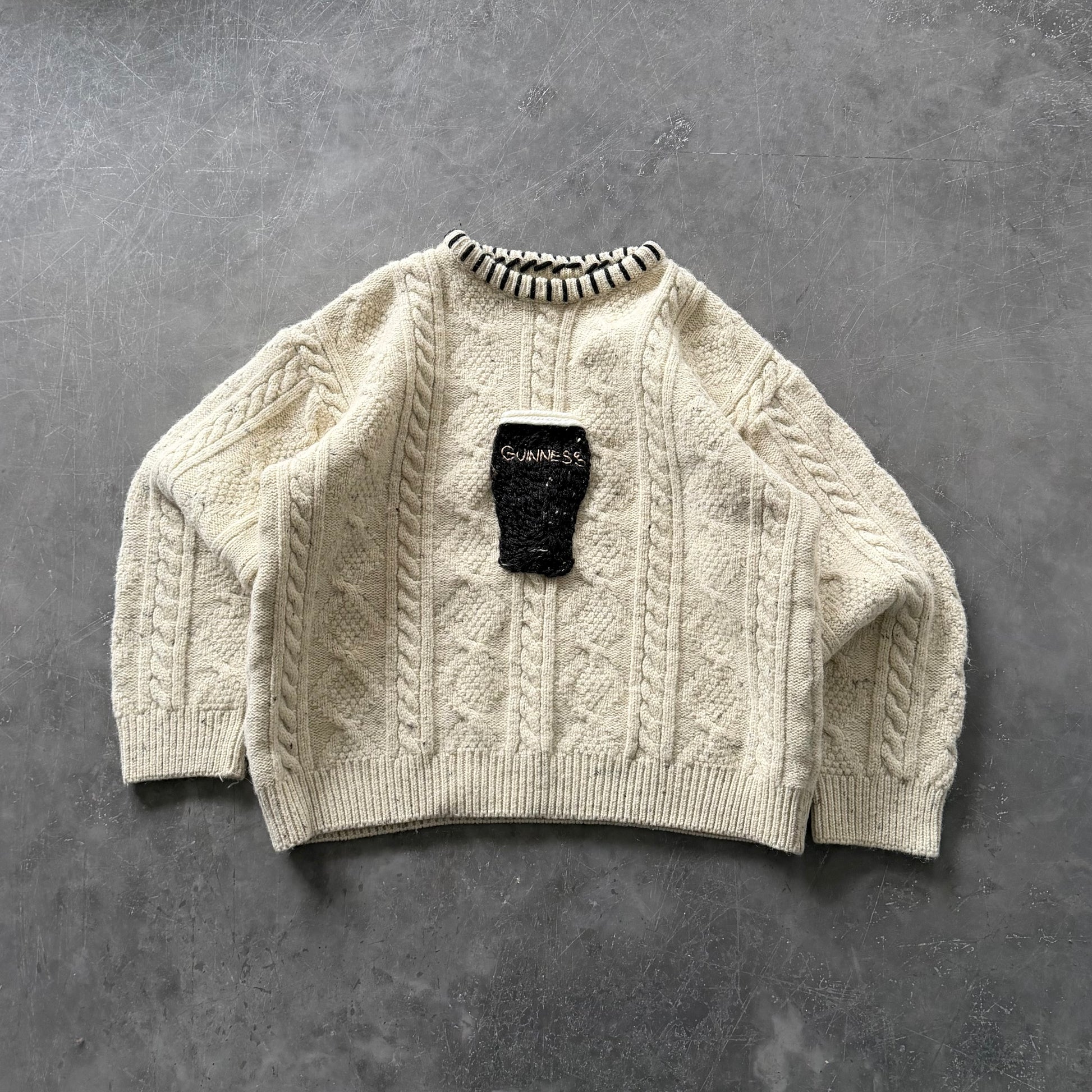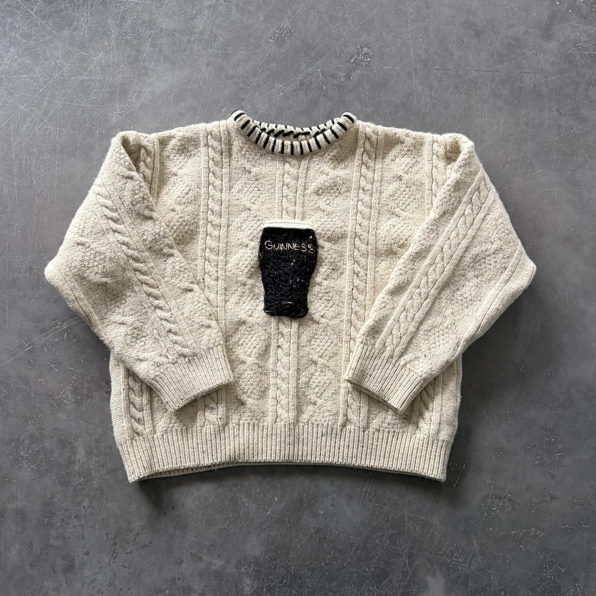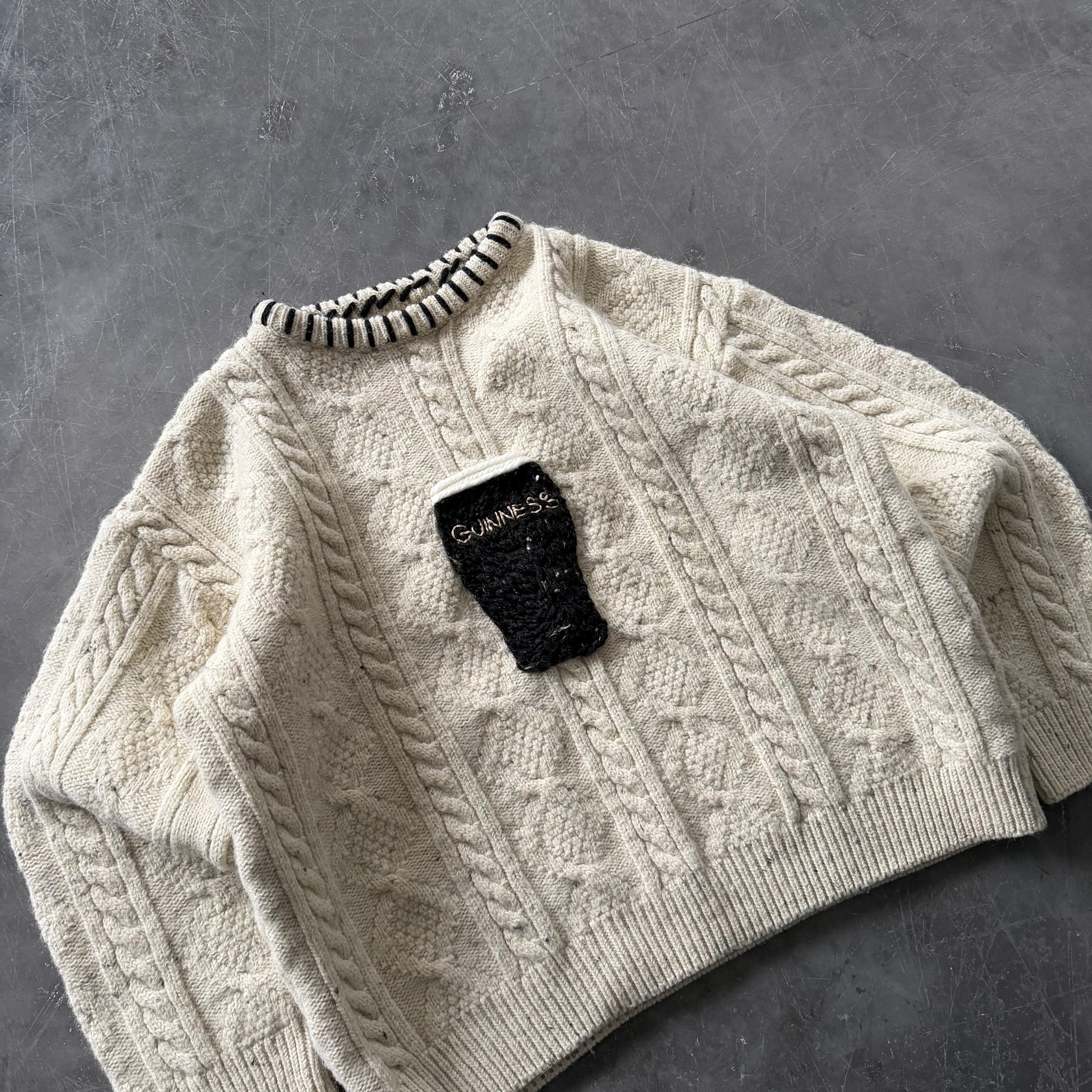 Our Guinness Geansaí’s are hand embroidered by us and are embroidered onto high quality aran wool sweaters. Each one is different and unique, please note that sizes are based on UK sizing, but measurements for the geansaí are listed below and are in inches.