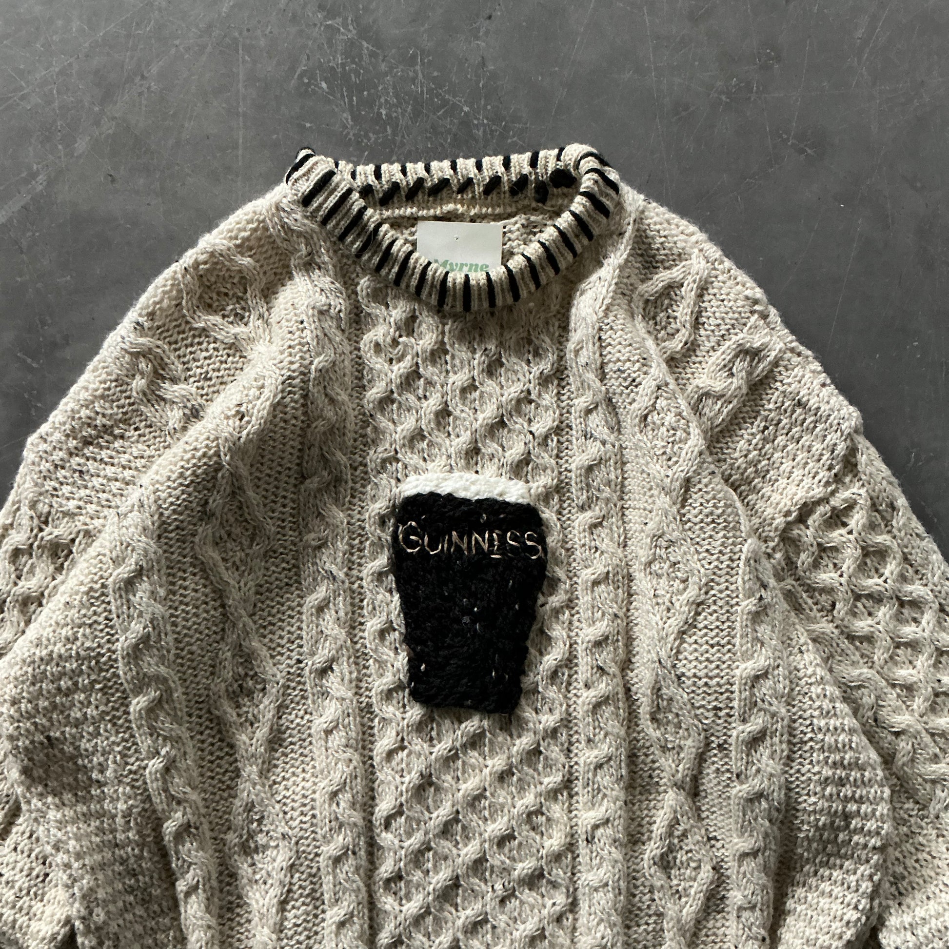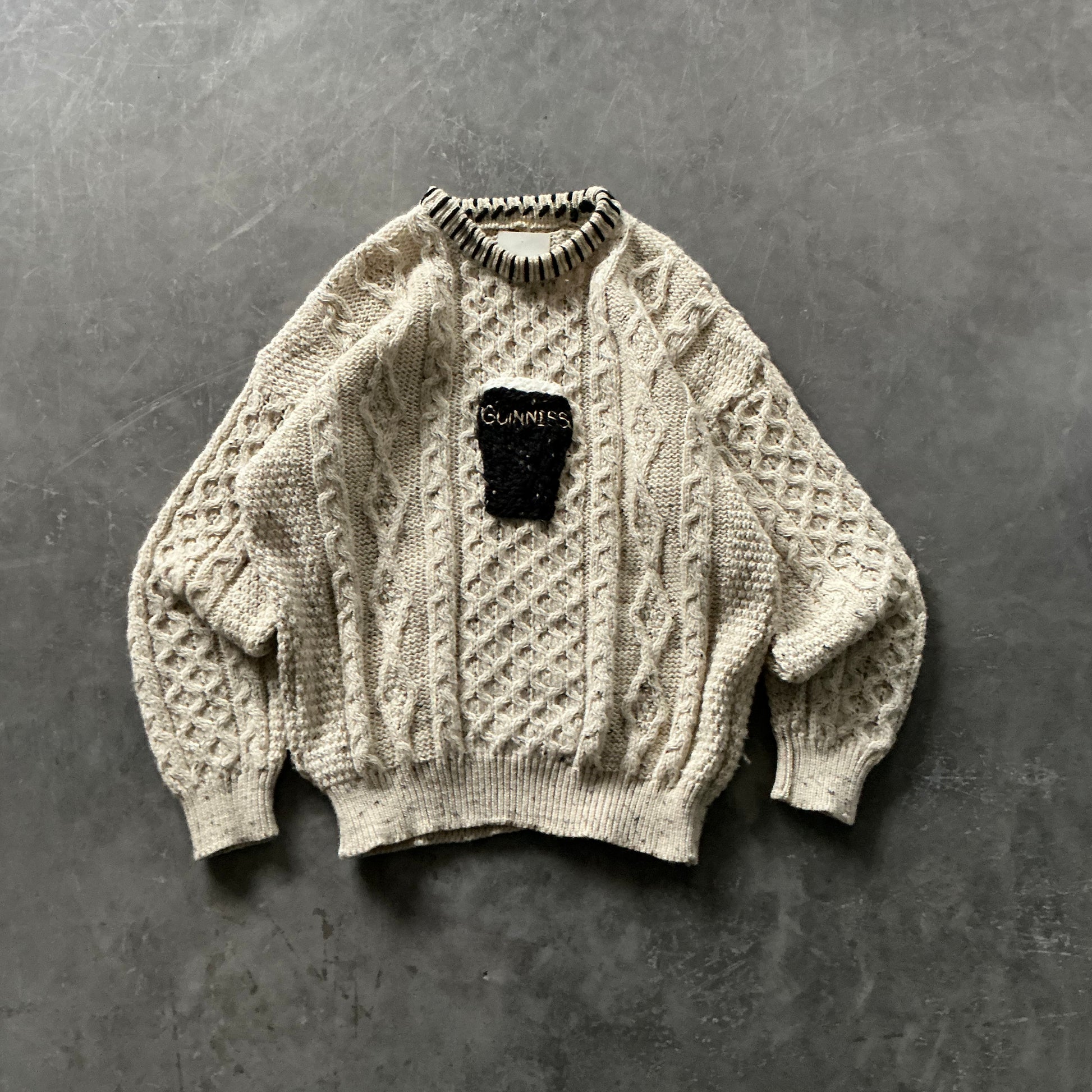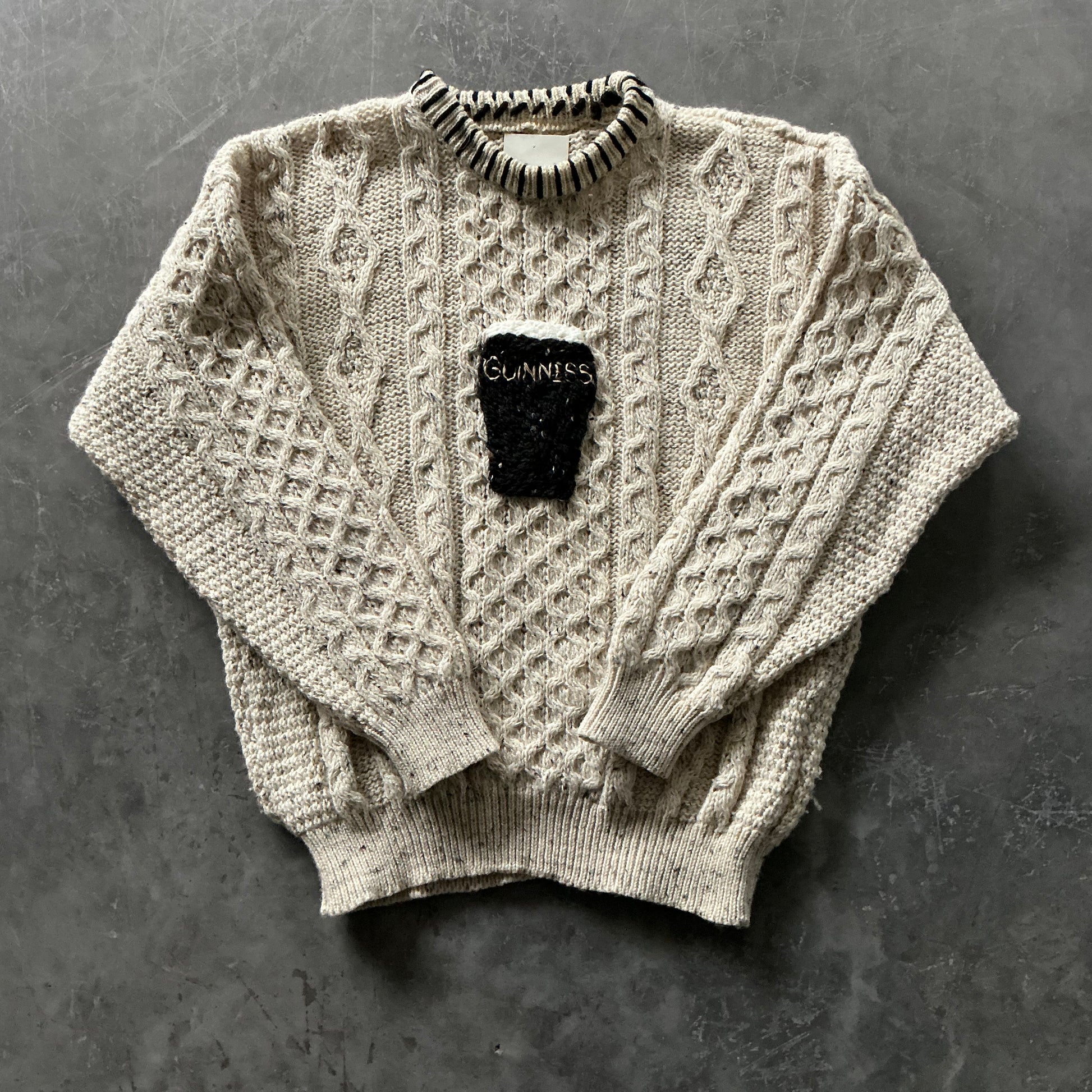 Our Guinness Geansaí’s are hand embroidered by us and are embroidered onto high quality aran wool sweaters. Each one is different and unique, please note that sizes are based on UK sizing, but measurements for the geansaí are listed below and are in inches.