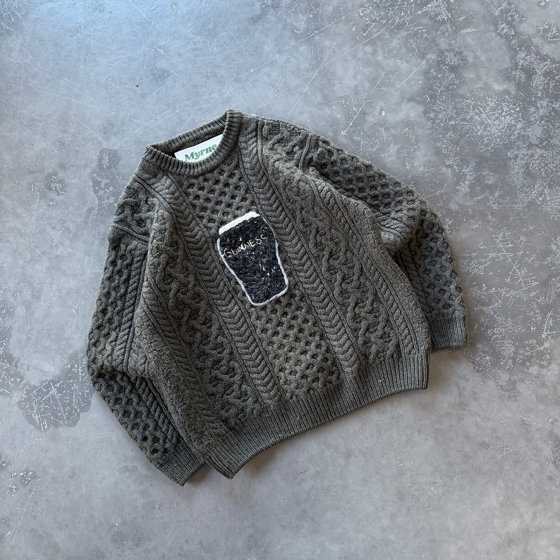 Our Guinness Geansaí’s are hand embroidered by us and are embroidered onto high quality aran wool sweaters. Each one is different and unique, please note that sizes are based on UK sizing, but measurements for the geansaí are listed below and are in inches.