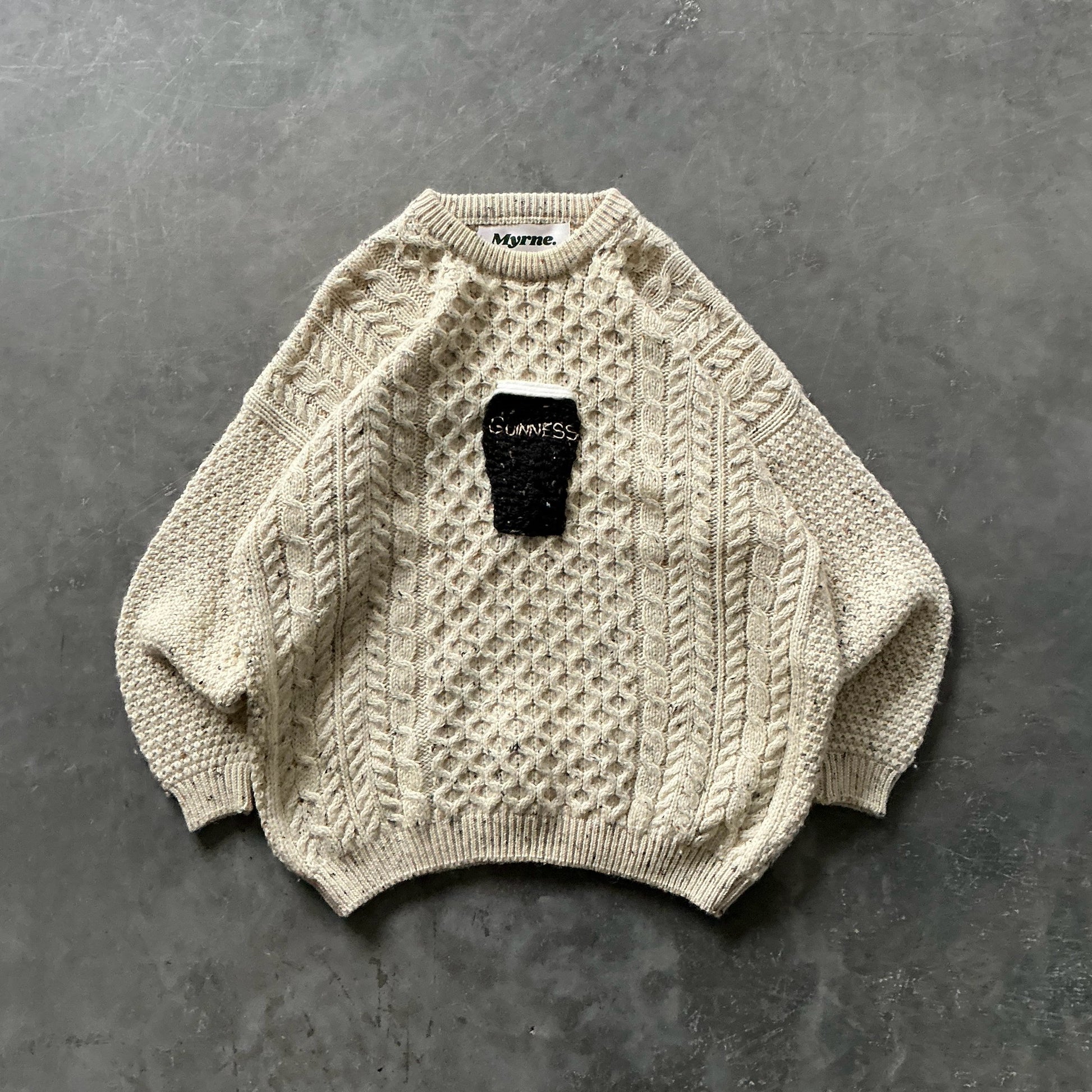 Our Guinness Geansaí’s are hand embroidered by us and are embroidered onto high quality aran wool sweaters. Each one is different and unique, please note that sizes are based on UK sizing, but measurements for the geansaí are listed below and are in inches.