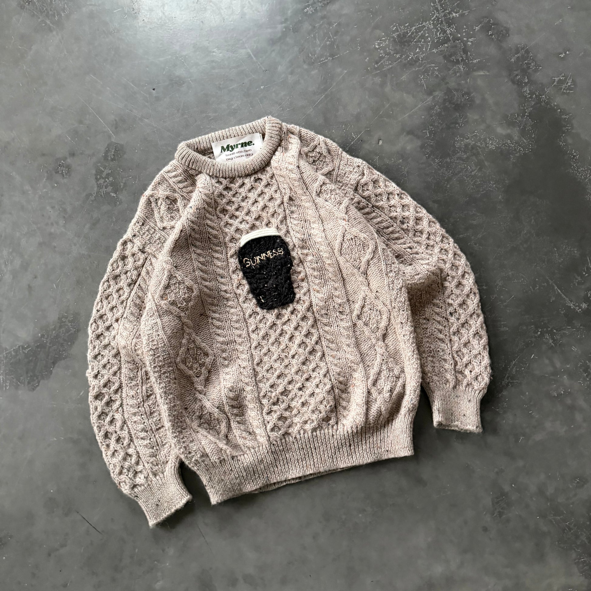 Our Guinness Geansaí’s are hand embroidered by us and are embroidered onto high quality aran wool sweaters. Each one is different and unique, please note that sizes are based on UK sizing, but measurements for the geansaí are listed below and are in inches.