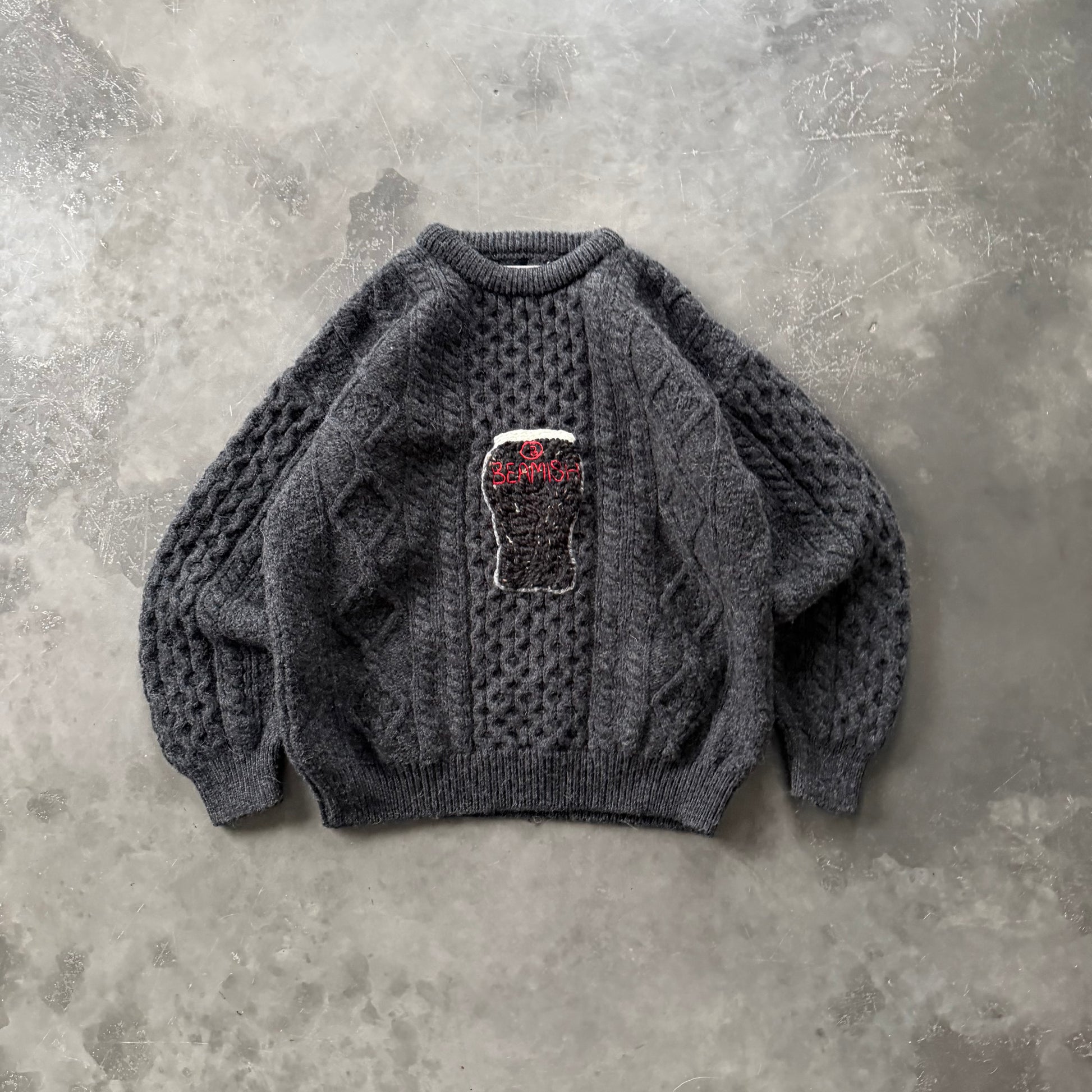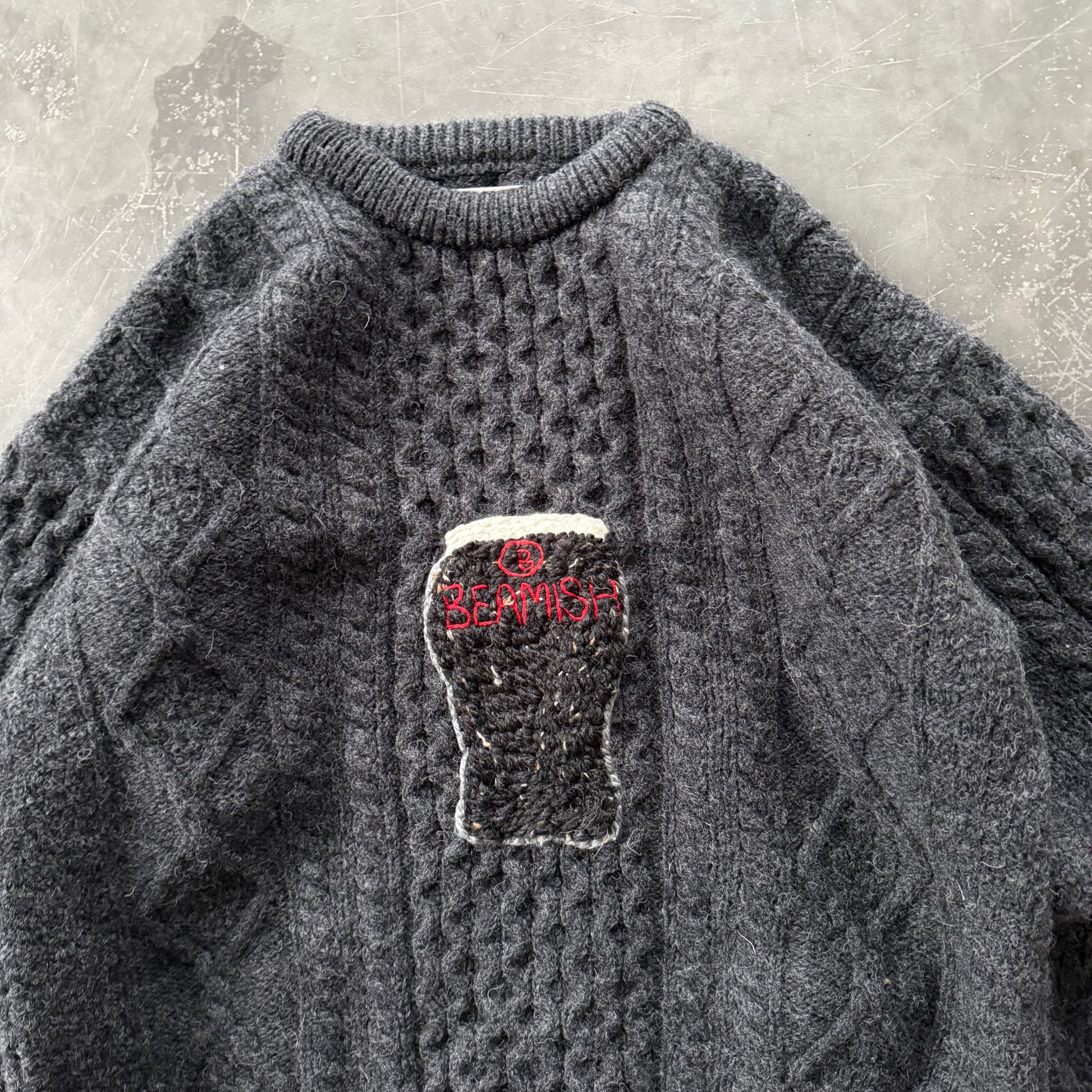 our pint geansaí’s are hand-embroidered by us onto 100% Aran wool sweaters. Each one is stitched by hand, no two are exactly the same.