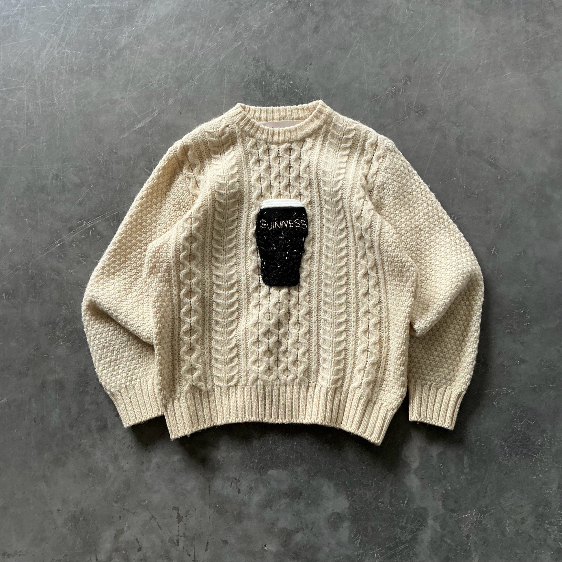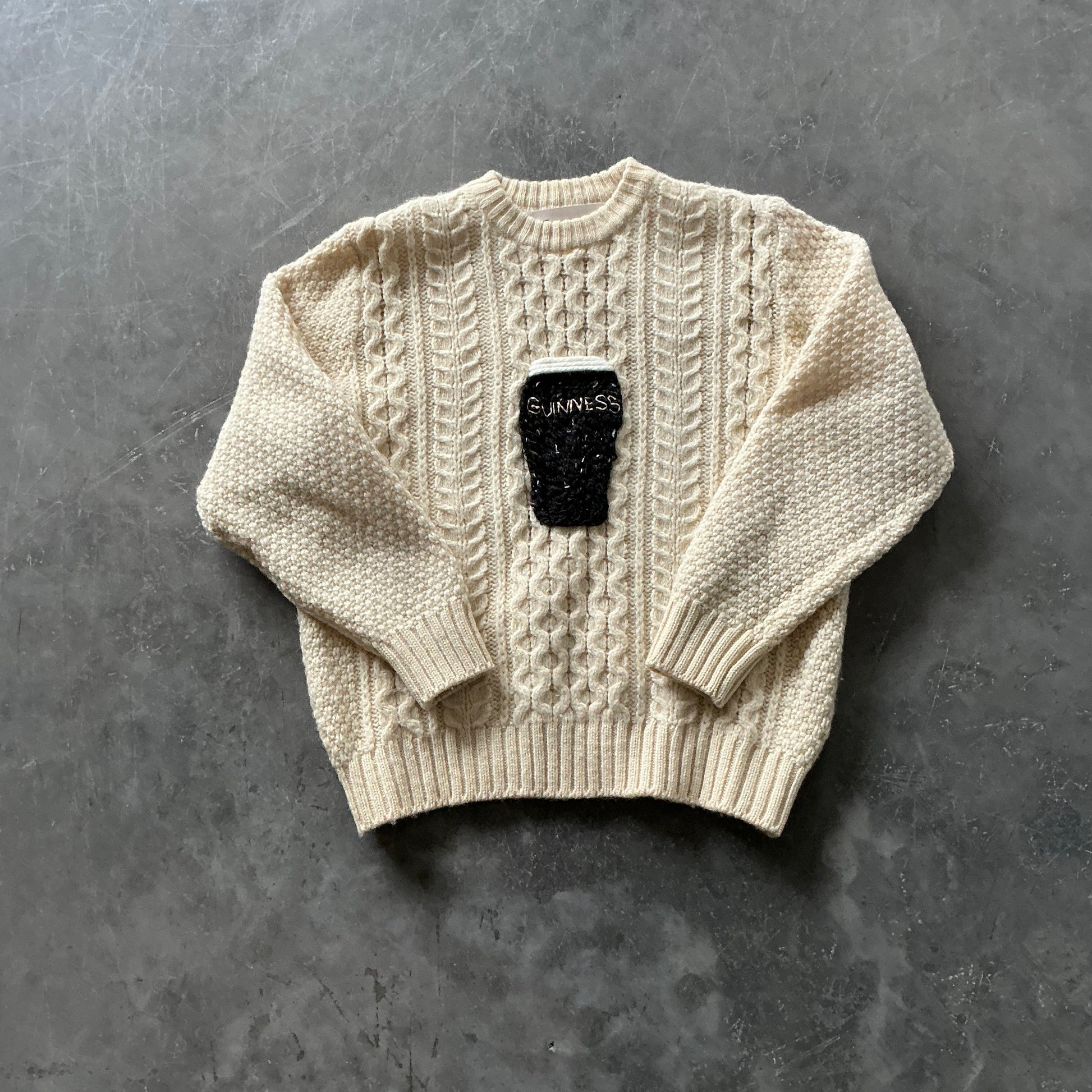 Our Guinness Geansaí’s are hand embroidered by us and are embroidered onto high quality aran wool sweaters. Each one is different and unique, please note that sizes are based on UK sizing, but measurements for the geansaí are listed below and are in inches.