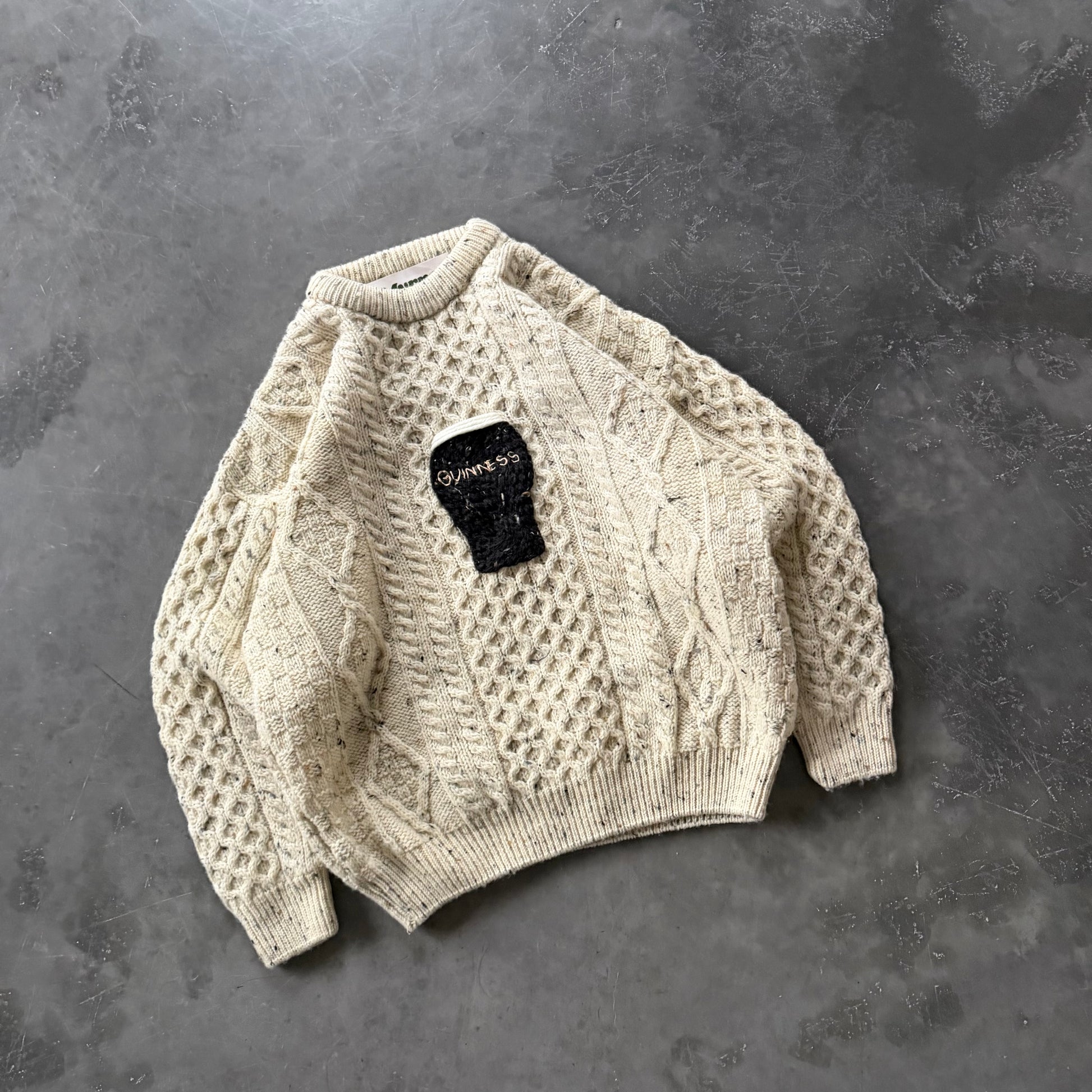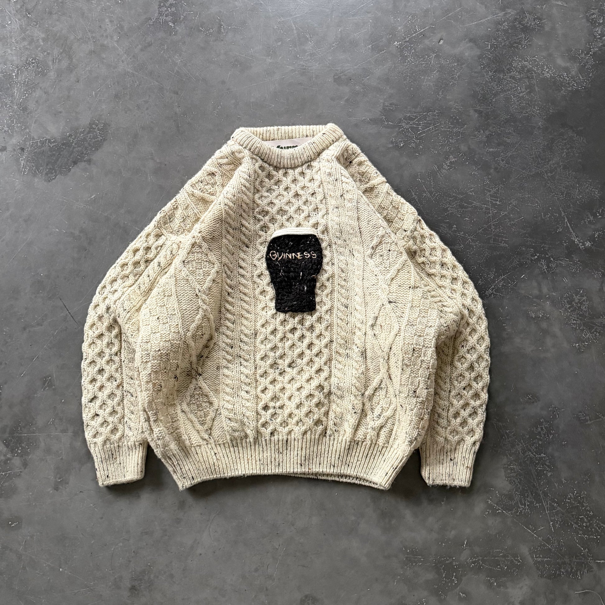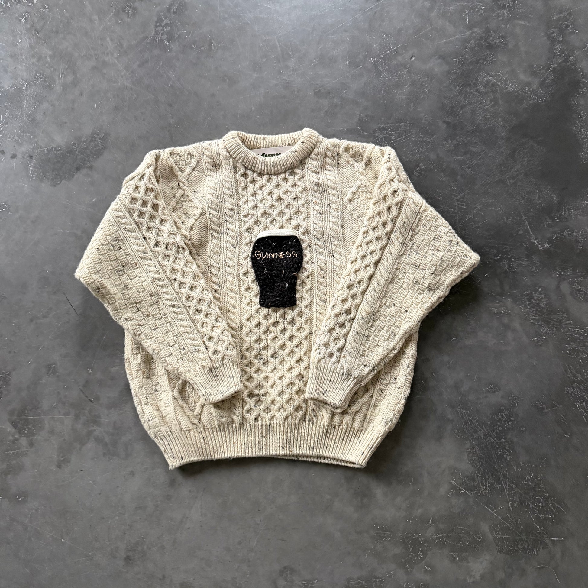 Our Guinness Geansaí’s are hand embroidered by us and are embroidered onto high quality aran wool sweaters. Each one is different and unique, please note that sizes are based on UK sizing, but measurements for the geansaí are listed below and are in inches.