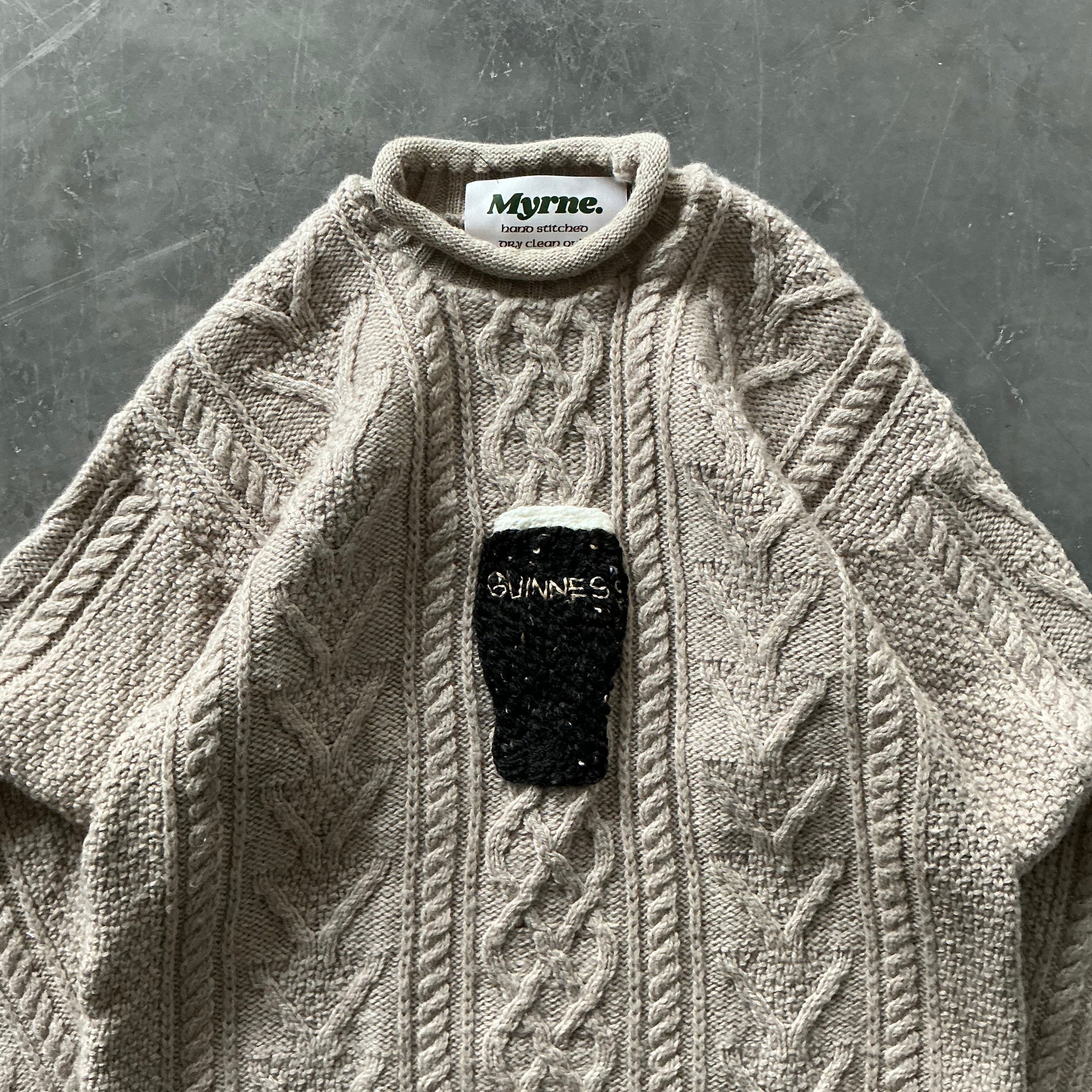 Our Guinness Geansaí’s are hand embroidered by us and are embroidered onto high quality aran wool sweaters. Each one is different and unique, please note that sizes are based on UK sizing, but measurements for the geansaí are listed below and are in inches.