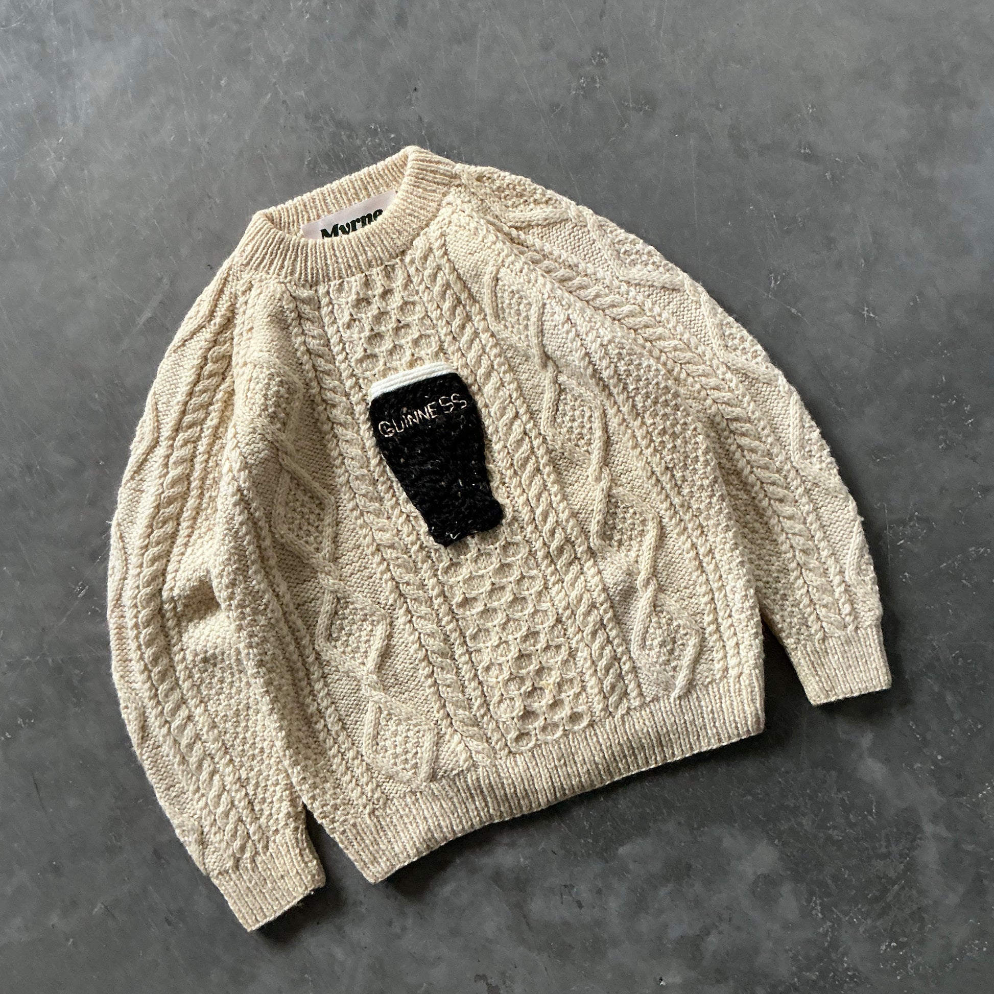 Our Guinness Geansaí’s are hand embroidered by us and are embroidered onto high quality aran wool sweaters. Each one is different and unique, please note that sizes are based on UK sizing, but measurements for the geansaí are listed below and are in inches.