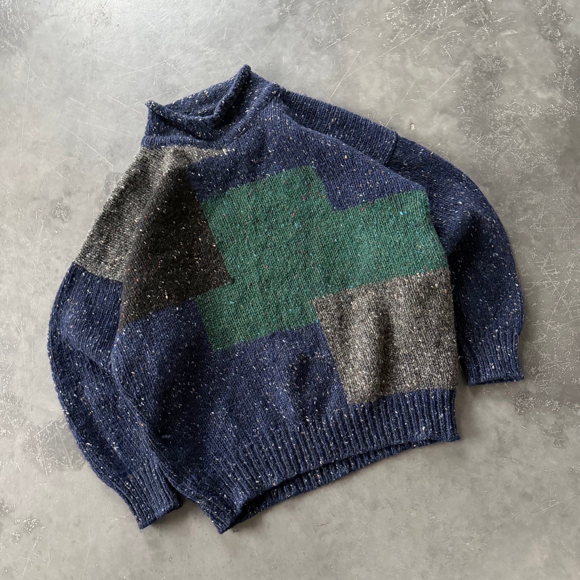 Chunky patchwork patterned knit, such a nice one overall. Made in Ireland. In brilliant condition for its age
