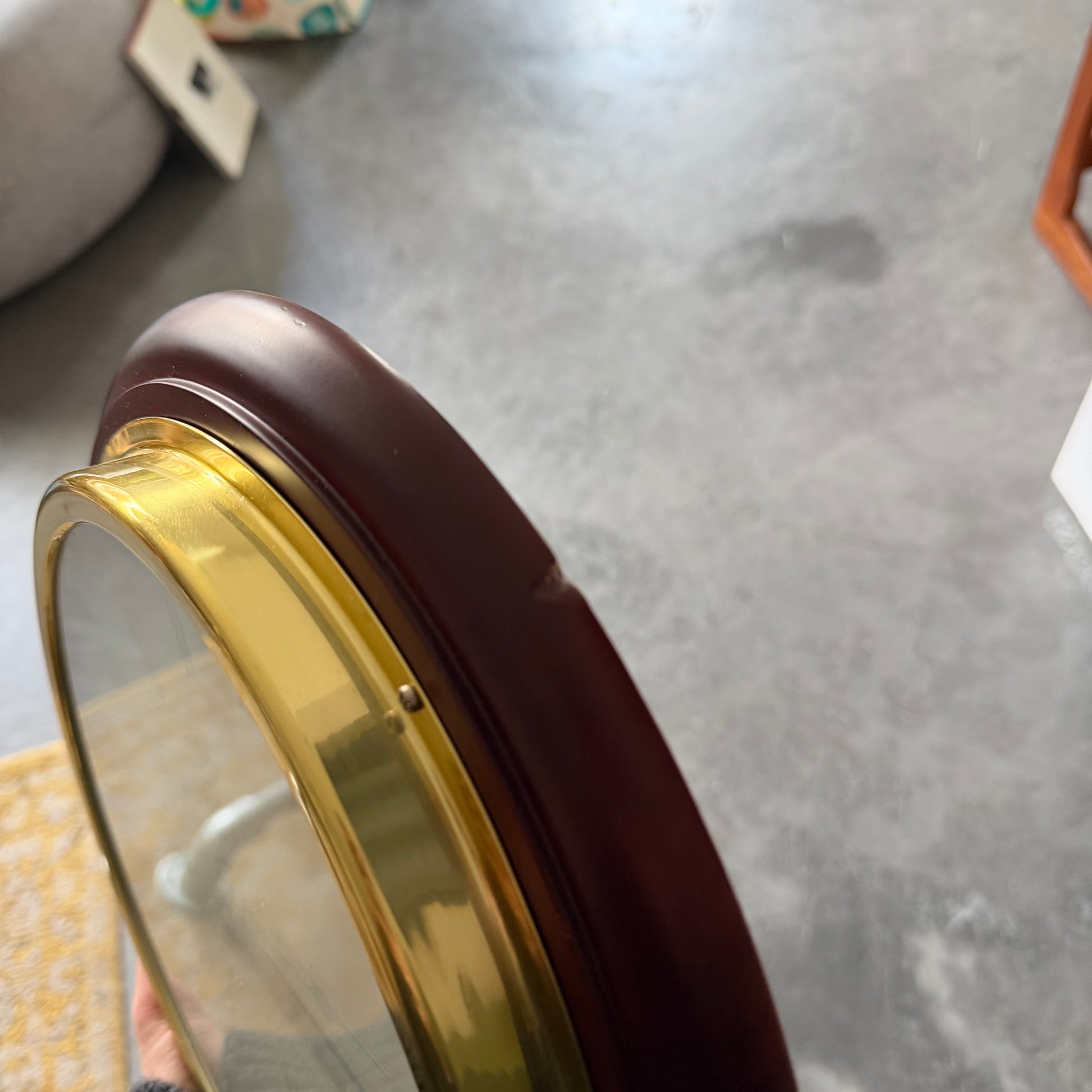 Wood mounted wall clock from Guinness, in great working order. Glass fronted clock, with Guinness branding on the face. Wood mount. Some small scuffs have been pictured, but all in all it’s in good condition. Large size