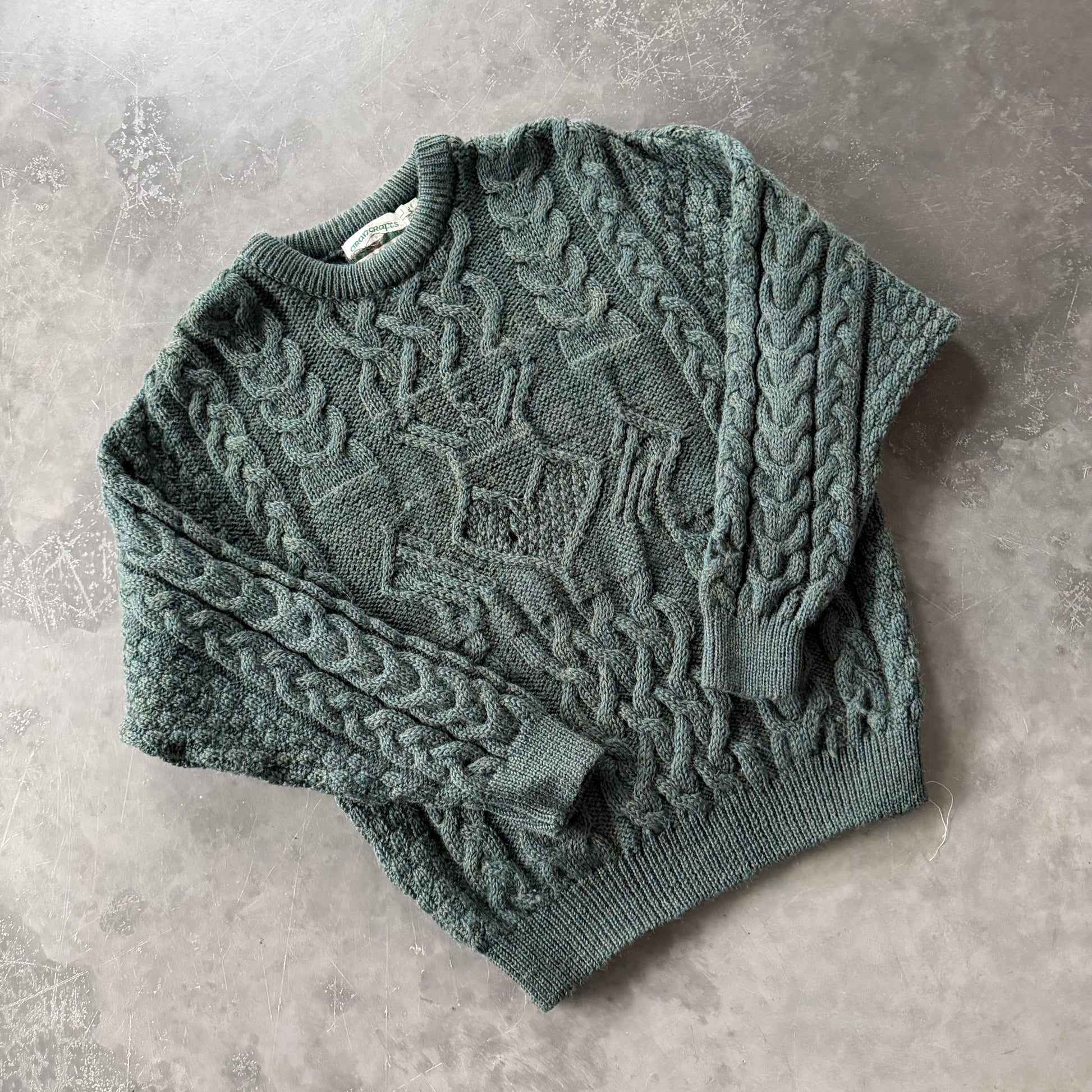 Such a nice one, green colourway with claddagh graphic on the front. 100% pure wool & made in Ireland. Small mend has been made on the front, but it isnt noticeable.