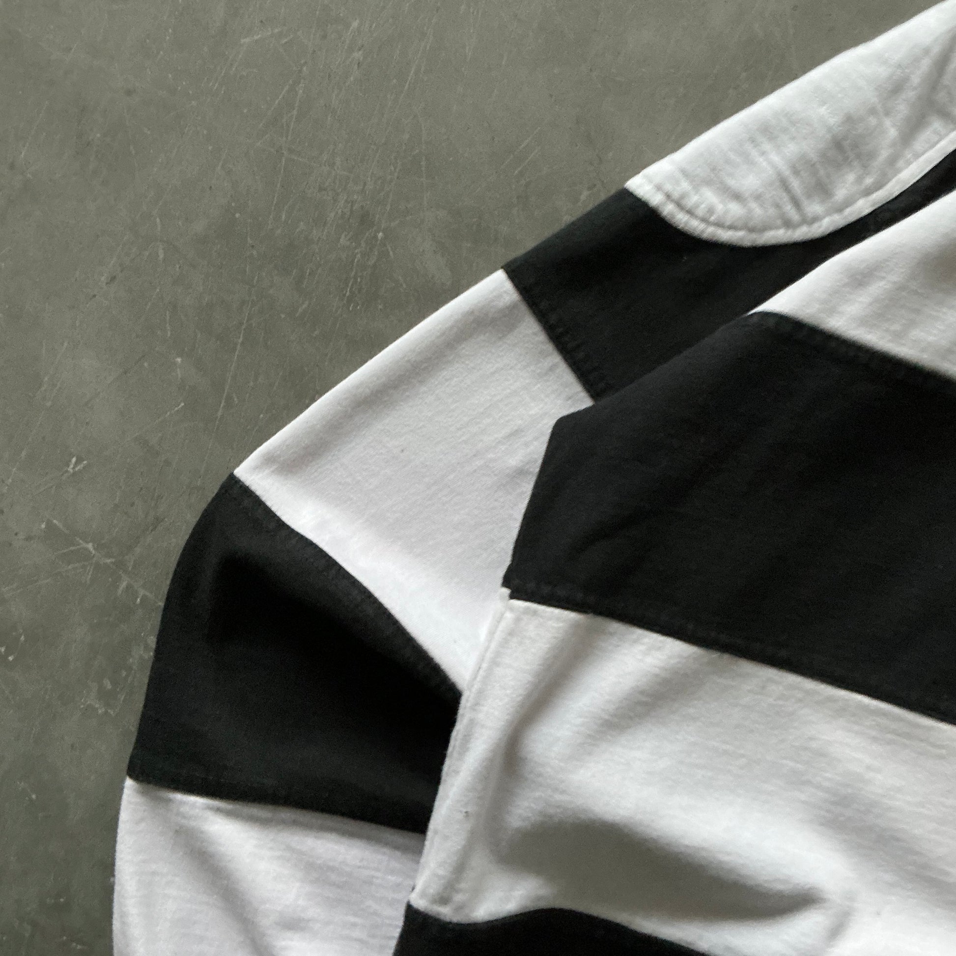 White & black striped patterning, with embroidered Guinness logo on the chest. Very faint mark on the inside of the sleeve has been pictured, there are no other flaws.